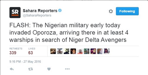 The Nigerian Army earlier today invaded Oporoza looking for militants belonging to the now dreaded Niger Delta Avengers. According to SaharaReporters, the military came in 4 warships to confront the militants.